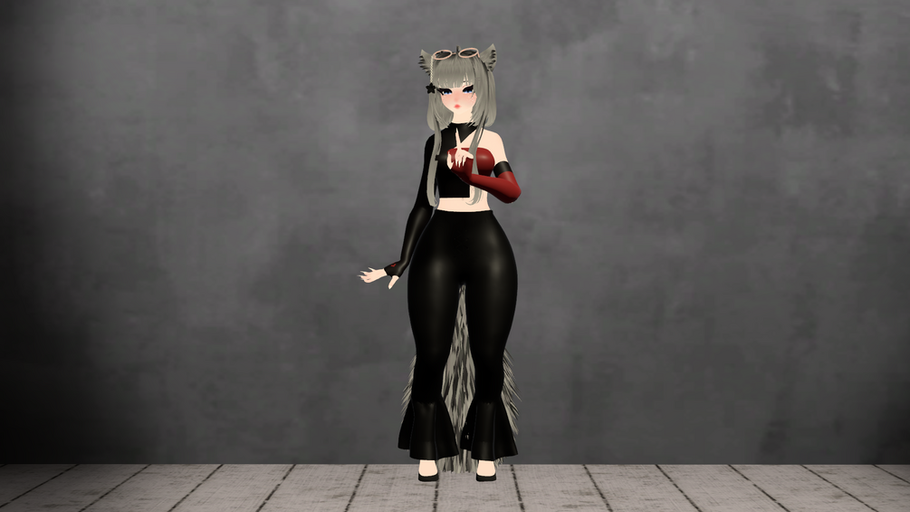 - Quite a lot of toggles! Hair swap for 3 hairstlyles, removable clothing, different outfit, accessories. Includes Props: Kitty, Cat Paws, Wine Glass, Worm, Lollipop.